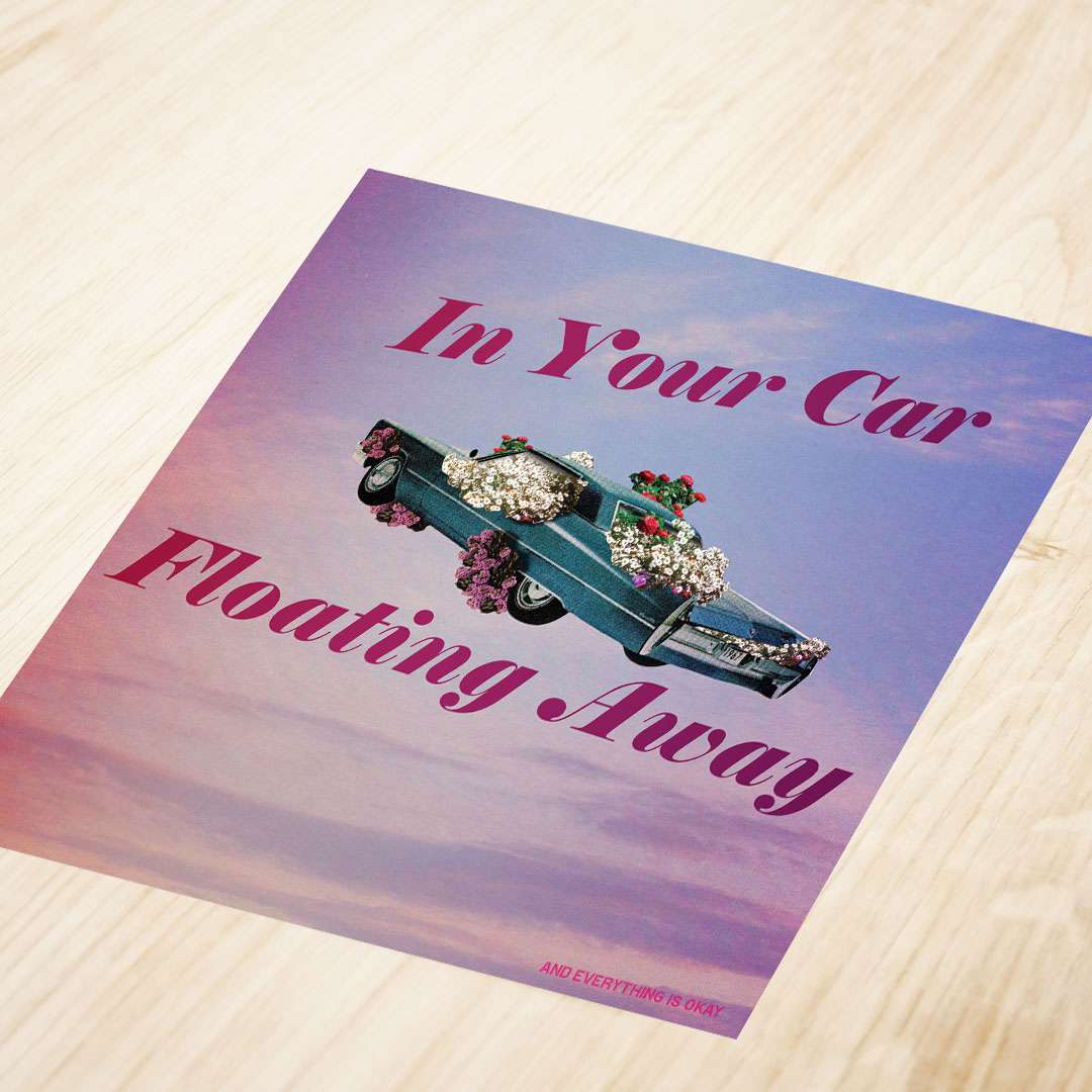 • 12″ x 12″ print of the digital collage artwork “Floating Away”.