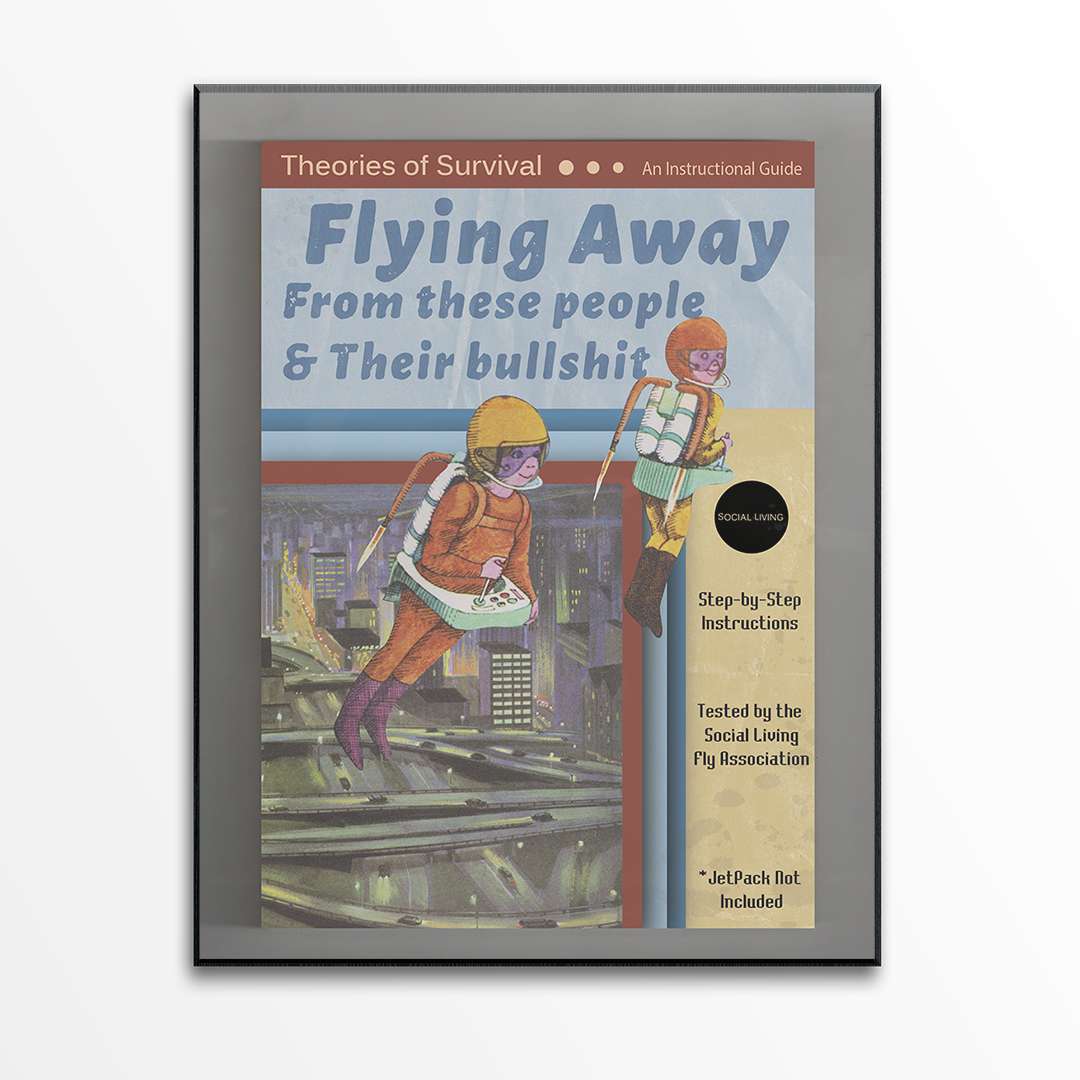 Take flight with this bold collage print featuring a jetpack designed for breaking free from life’s chaos and the endless drama of the everyday. Vibrant imagery and whimsical elements create a sense of liberation, inviting viewers to leave behind the bullshit and soar into a world of possibilities. Perfect for those who crave freedom and a touch of rebellion, this piece is a playful reminder to rise above it all.